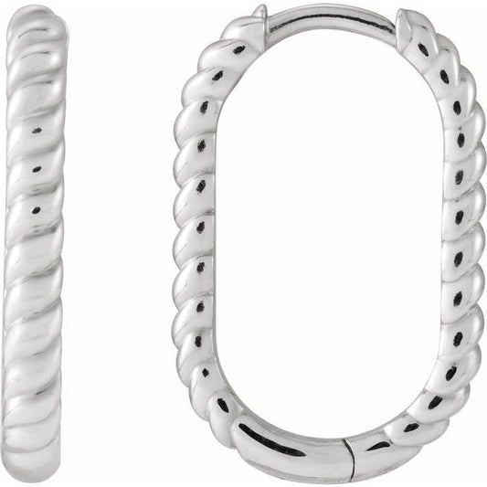 14K Elongated Oval 20 mm Rope Hoop Earrings